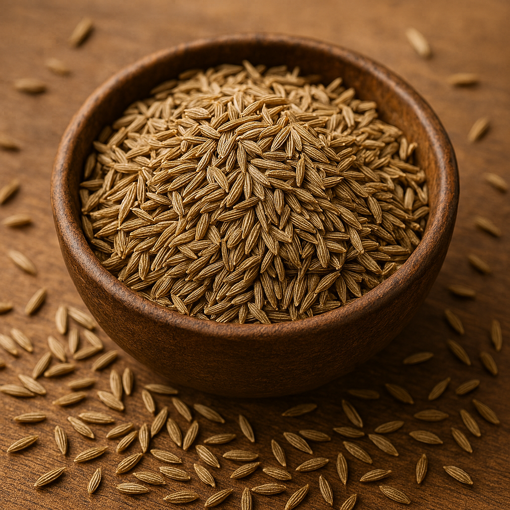 Jeera (cumin) has a warm, earthy flavor used widely in cooking. It aids digestion and is rich in iron.