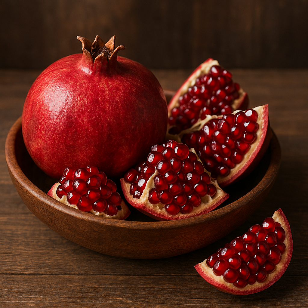 Pomegranates are rich in antioxidants and vitamins, promoting heart health. They have a sweet and tangy flavor, often enjoyed fresh or as juice.