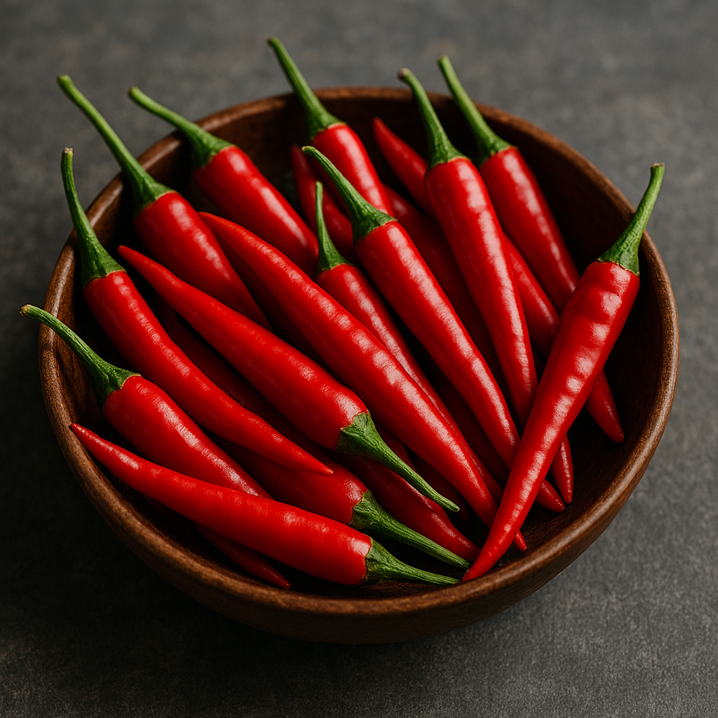 Red chilies provide intense heat and vibrant color to recipes. They are high in capsaicin, which helps boost metabolism and reduce inflammation.