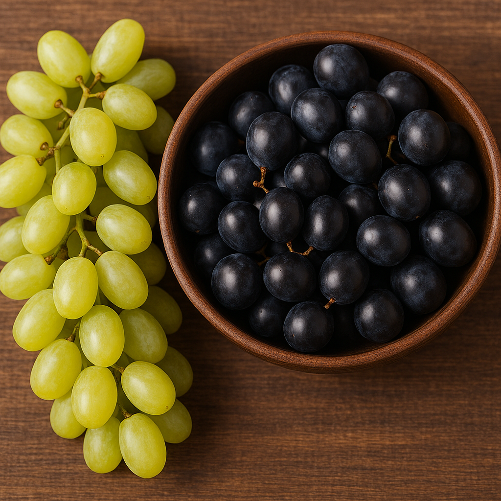 Grapes are packed with vitamins and antioxidants, supporting immune health. They can be eaten fresh, dried as raisins, or used for wine making.